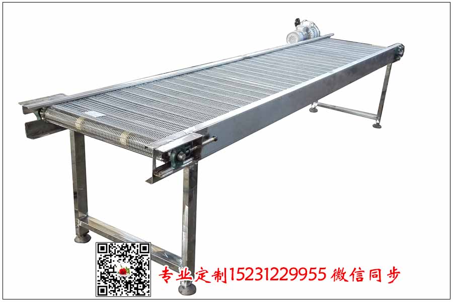羊毛分揀線采用不銹鋼輸送帶來輸送,其結(jié)構(gòu)形式可以采用鏈條式鋼絲編織型輸送網(wǎng)帶,該輸送網(wǎng)帶孔徑可調(diào),絲徑可調(diào),鏈條節(jié)距可調(diào),訂購隨意簡單,以下是客戶訂購的鏈條式不銹鋼網(wǎng)帶的訂單數(shù)據(jù),希望能給大家做個參考: 鏈條式不銹鋼輸送帶總寬為800毫米,長度為30米 鏈條節(jié)距為38.1毫米(滾珠到滾珠的距離) 鋼絲輸送網(wǎng)帶孔徑為10*15毫米,孔徑可以根據(jù)自己的需要定制不銹鋼網(wǎng)帶的絲徑為1.2毫米,支軸直徑為8毫米,因為輸送網(wǎng)帶相對較寬,因此支軸的選擇不能太細,否則會出現(xiàn)塌腰的情況,支軸之間的距離為15公分左右。