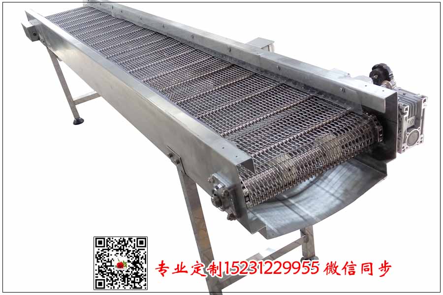 網(wǎng)帶輸送機(jī)是輸送行業(yè)必不可少的輸送設(shè)備,昨天桂林的袁總來電咨詢不銹鋼網(wǎng)帶輸送機(jī),用來輸送小食品,我公司根據(jù)袁總提供的相關(guān)資料定制具體數(shù)據(jù)如下:規(guī)定在食品行業(yè)我們采用不銹鋼304材質(zhì),機(jī)器的總寬在700毫米,總長(zhǎng)度在5米,要求輸送機(jī)不帶腿,鏈條不銹鋼網(wǎng)帶 鏈節(jié)距為31.75毫米,不銹鋼桿直徑為8毫米,鏈桿之間的距離為200毫米,不銹鋼絲直徑為1.5毫米,網(wǎng)帶節(jié)距為30毫米,網(wǎng)帶螺距為20毫米, 配帶0.75千瓦電機(jī),帶減速機(jī)和變頻器,要求速度比為1:50??刂崎_關(guān)要求正反均可調(diào)節(jié)。 網(wǎng)帶輸送機(jī)的用途特別廣泛,不銹鋼網(wǎng)帶是輸送機(jī)中重要的配件,可以根據(jù)輸送產(chǎn)品的形狀大小加工成不同規(guī)格結(jié)構(gòu)的網(wǎng)帶。 不銹鋼輸送機(jī)整機(jī)堅(jiān)固耐用,不愛生銹,使用壽命長(zhǎng),已經(jīng)廣泛的應(yīng)用在解凍流水線輸送設(shè)備中。