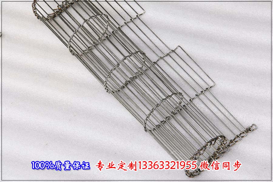 乙型網(wǎng)帶又稱乙字型網(wǎng)帶、巧克力網(wǎng)帶、梯形網(wǎng)帶 特點:乙字網(wǎng)帶一般采用亮硬不銹鋼材料或者高碳鋼經(jīng)過特制模具彎曲壓制編織而成,網(wǎng)寬從200到6000mm不等,通常情況下用乙字網(wǎng)帶輪定位傳動,確保正確穩(wěn)定的運轉(zhuǎn)。開孔率大,通風(fēng)性好,排水性佳。 應(yīng)用:廣泛用于各個電子行業(yè)線路板的化銀,固熔,烘干,食品行業(yè)用于巧克力、餅干、魚片烘烤、速凍、干燥之用、乙型網(wǎng)帶邊緣可以安裝鏈條用鏈條帶動網(wǎng)帶驅(qū)動。