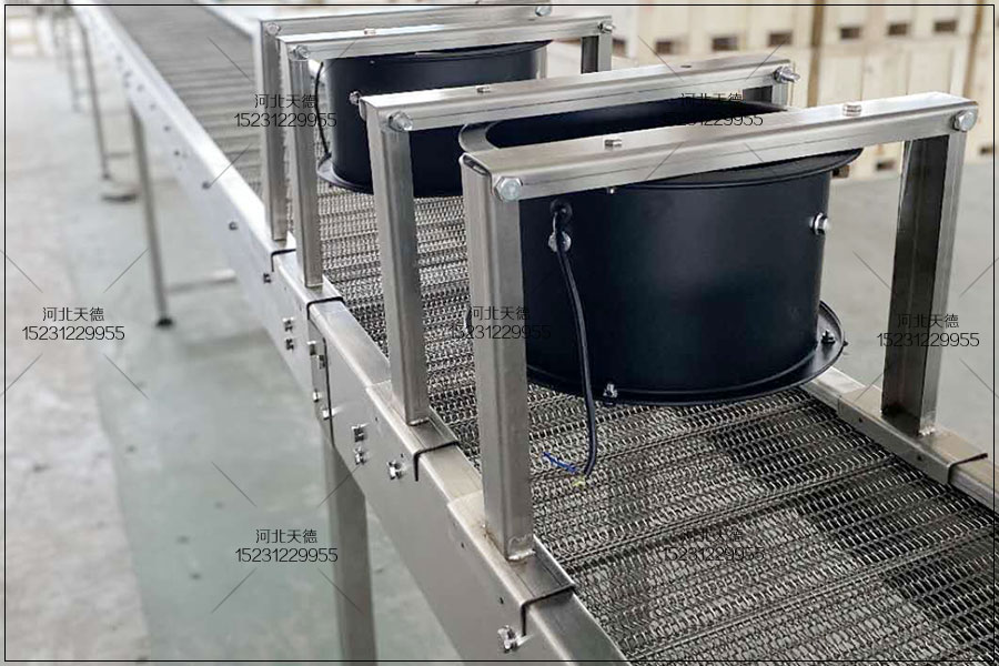 2、乙型網(wǎng)帶輸送機(jī):網(wǎng)帶輸送機(jī)的輸送帶采用乙型網(wǎng)輸送帶運(yùn)輸,乙型輸送帶,又被稱為巧克力網(wǎng)帶,開孔率較大,自然通風(fēng)性、排水管道性好,適用生產(chǎn)制 造凈 重比較輕商品的制冷、煎炸、蛋糕烘焙、干躁、加溫上。可用領(lǐng)域:小點(diǎn)心、魚種食品類、批薩、蔬菜水果、吐司面包、糕餅店、肉類食品、糖塊、曲奇 餅干、 朱古力、干果和新鮮水果等。